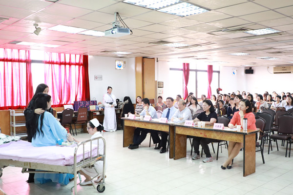 本次成果發(fā)布會特邀請了怡德醫(yī)療投資管理集團董事長周大為、臺灣長庚醫(yī)院護理部主任朱翠萍、南方航空專任講師劉瀟瀟、醫(yī)院副院長許小兵、醫(yī)院黨委委員麥兆章?lián)卧u委,種子成員分為四組以幻燈片講述及短劇表演兩者結(jié)合的形式進行成果展示。“四海八荒”組以穿越的形式風(fēng)趣幽默地展現(xiàn)了一場《白淺生娃記》;“北極陽光”組以注重臨終關(guān)懷的角度展現(xiàn)了一場《惟愿生死兩相安》;“微笑心情”組演出的《晚會遐想》以精彩的歌舞形式展示了當(dāng)今的醫(yī)患關(guān)系;“微微一笑很舒心”組演出的《一張床位》生動地再現(xiàn)了現(xiàn)實護理工作場景。