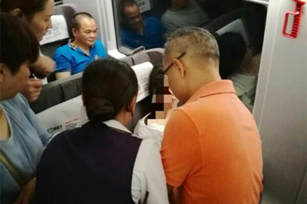 “請問車上有醫(yī)務(wù)人員嗎?一號車廂有位乘客需要幫忙!”7月2日下午,從廣州南開往杭州東站的G1306的列車上,一位女乘客突發(fā)癲癇,抽搐不斷,臉色發(fā)白,危急之時,當(dāng)廣播響起,剛好在車上的十幾位順德醫(yī)生毫不猶豫地從座位站起,向病人的車廂奔去……