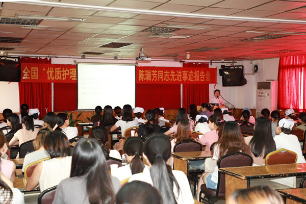 一陣陣掌聲,一次次感動(dòng)。為進(jìn)一步深化優(yōu)質(zhì)護(hù)理服務(wù)內(nèi)涵,彰顯我院護(hù)理人員服務(wù)水平,掀起向先進(jìn)個(gè)人學(xué)習(xí)的熱潮,在全院營(yíng)造為人民群眾提供全程、全面、優(yōu)質(zhì)的護(hù)理服務(wù)工作氛圍,7月10日、11日下午,我院一連召開兩場(chǎng)全國(guó)優(yōu)質(zhì)護(hù)理服務(wù)表現(xiàn)突出護(hù)士陳瑞芳先進(jìn)事跡報(bào)告會(huì)。護(hù)理部主任歐陽(yáng)合意主持了報(bào)告會(huì),全院護(hù)士長(zhǎng)、護(hù)理骨干、新入職護(hù)士等300余人參加了報(bào)告會(huì)。