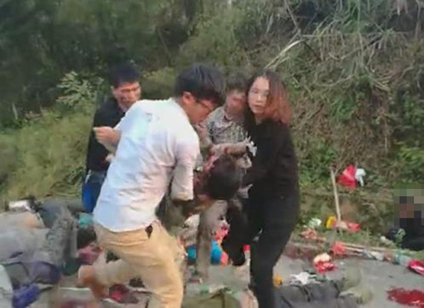 在一次交通事故中,李國(guó)華(右一)挺身而出,奮力搶救傷員。