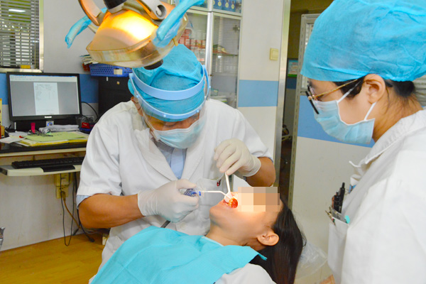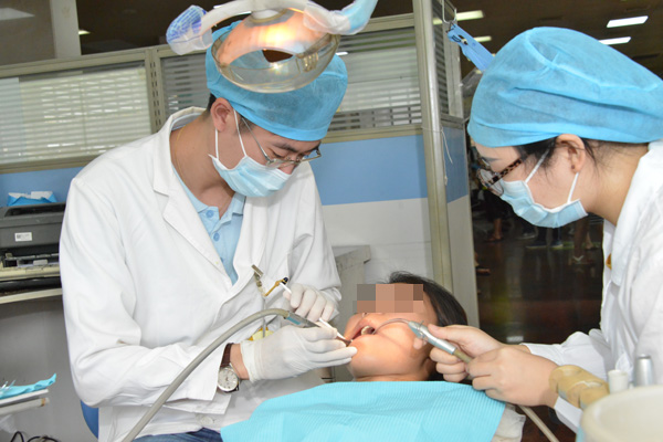 口腔科醫(yī)護(hù)人員認(rèn)真為患者進(jìn)行治療。