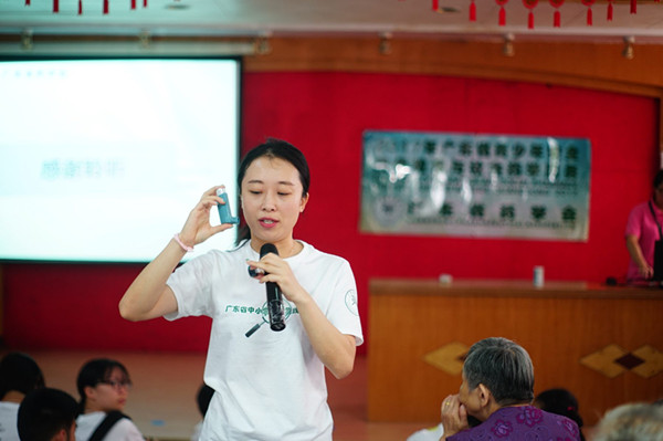 活動的第二天的主題是“奉獻愛心,回饋社會”。在中山一院陳杰主任和番禺何賢醫(yī)院林岱主任的帶領下,導師學員們率先來到鳳城敬老院進行探訪慰問活動,為避免影響老人作息時間組織方早早到達現場布置會場,一起為60位老人進行特殊劑型的使用方法以及老年人用藥注意事項,青少年與老人們共同游戲;同時,一起欣賞了精彩的武術表演;孩子們的童心感染著現場每一位老年人,大家在歡樂的笑聲中結束探訪活動。隨后,在大良街道辦的陪同下,學員導師們兵分兩路,頂著烈陽探訪了兩戶低保困難戶,為低保困難戶送去溫暖。