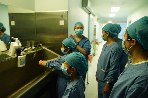 活動首日,23位來自全省的青少年參與了理論學習和醫(yī)院實踐活動。課間,導師們結合日常生活,深入淺出地講解了安全用藥知識,并通過有獎互動的形式調動同學們的積極性;當天下午,同學們參與到醫(yī)院實踐活動,先后參觀了西藥房和中心藥房,初步了解藥品調配、貯藏、有效期管理、麻精藥品管理和藥房自動化。隨后,活動協辦方邀請了急診科主任講解心肺復蘇的操作技巧,并通過手把手教學形式糾正學員的操作誤區(qū)。學員們初步了解急救知識后走訪普外一區(qū),近距離接觸醫(yī)生和護士工作,深入藥品調配室了解注射劑調配過程。臨床訪問結束后,同學們緊跟著換上防護衣服,經過重重消毒和層流,來到手術室參觀,初步了解手術室的具體操作和麻醉師的職責范圍,同時學習七步洗手法的重要性。
