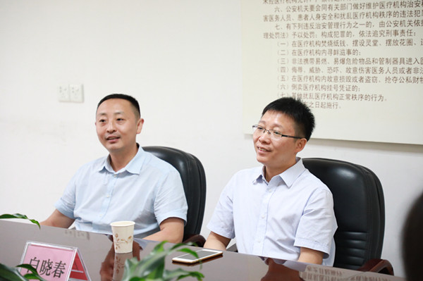 醫(yī)院黨委書(shū)記、院長(zhǎng)劉瑞林、副院長(zhǎng)劇永樂(lè)熱情接待了兩位專(zhuān)家。會(huì)上,劉瑞林院長(zhǎng)就我院目前綜合情況、人才隊(duì)伍建設(shè)及共建后學(xué)科發(fā)展規(guī)劃做了詳細(xì)介紹,并表示希望能夠借助基礎(chǔ)學(xué)院的雄厚科研實(shí)力,通過(guò)多元化的合作模式,推進(jìn)我院科研事業(yè)的發(fā)展。