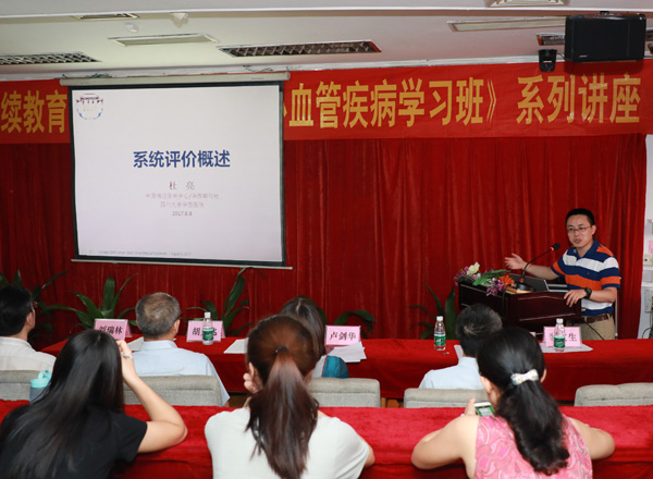 四川大學(xué)華西醫(yī)院華西期刊社社長(zhǎng)杜亮教授,《中國(guó)循證醫(yī)學(xué)雜志》、《Journal of Evidence-Based Medicine》編輯部主任張永剛博士,中山大學(xué)附屬第一醫(yī)院心血管醫(yī)學(xué)部心力衰竭科副主任、心內(nèi)科藥物臨床研究中心副主任陳藝?yán)蚋苯淌诘葘<页鱿藢W(xué)習(xí)班,并在學(xué)習(xí)班上分別就循證醫(yī)學(xué)概念及發(fā)展、循證醫(yī)學(xué)檢索及質(zhì)量評(píng)估、藥物臨床試驗(yàn)管理等方面作了精彩的學(xué)術(shù)報(bào)告,對(duì) 循證醫(yī)學(xué)與心血管疾病的診療進(jìn)行了探討 。