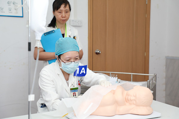 ??????? 參加本次競賽的教師選手均是各科選拔出來的精英,通過隨機抽簽組隊,每隊由來自不同專業(yè)的選手組成,一共8支參賽隊伍。競賽項目為理論考試和臨床操作多站考核兩部分,內(nèi)容涉及內(nèi)科、外科、婦產(chǎn)、兒科、護理、重癥急救等多個??萍寄?,共設(shè)5個考站,每名選手需完成4-5個操作項目??颊驹O(shè)計既考查選手們個人的操作能力,又考驗選手們團隊合作能力。通過一上午的較量,選手們發(fā)揮出色,最終由黎泳欣、陳遠祥、何星云三名選手組織的教師隊伍獲得冠軍。