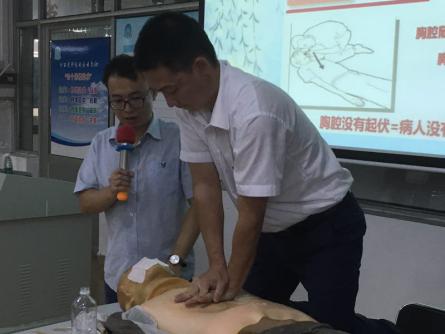 ??????? 隨后,胡卓豐醫(yī)師又向大家傳授了心肺復(fù)蘇的知識,通過操作示范,及與廠區(qū)員工的互動,讓大家對心肺復(fù)蘇有深入的認(rèn)識。