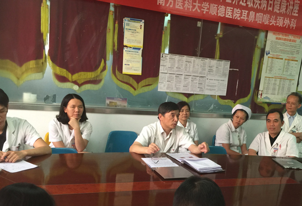 ??? 謝民強教授細(xì)心為順德患者診斷。