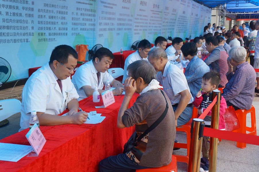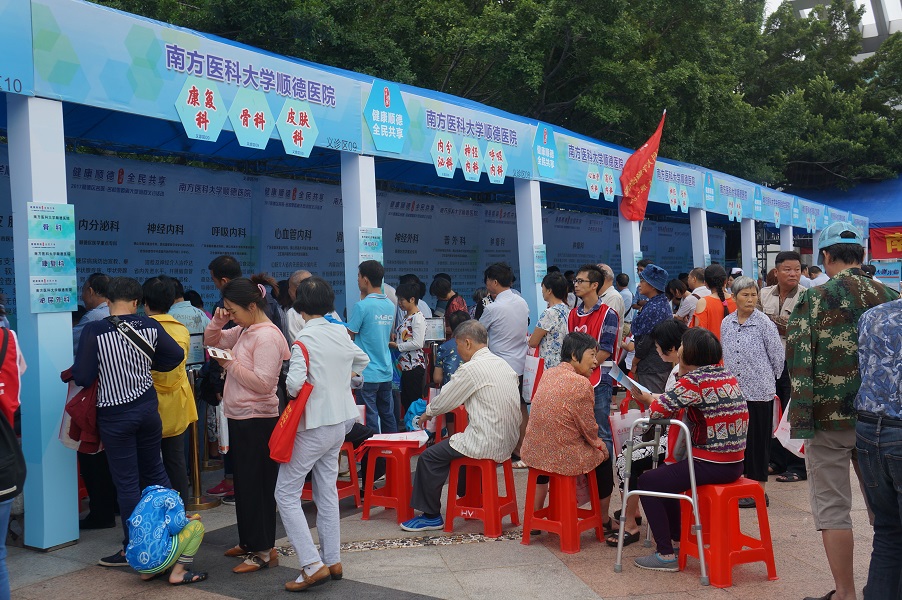 ??????? 10月14日上午,“健康順德 全民共享——2017順德區(qū)名醫(yī)名校零距離大型巡回義診”活動容桂站在花溪公園舉行,南方醫(yī)科大學南方醫(yī)院、珠江醫(yī)院、中西結合醫(yī)院以及南方醫(yī)科大學順德醫(yī)院共派出32名專家現場坐診,為市民提供免費醫(yī)療服務。