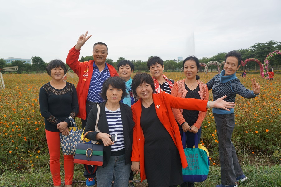 ??????? 廣闊的夢(mèng)里水鄉(xiāng)百花園以花海、水系為主題,種植著來(lái)自世界各地的數(shù)百種名花,一年四季輪番開(kāi)放。漫步于其中,一邊是大片花海,姹紫嫣紅;一邊是號(hào)稱華南最大的觀賞性玻璃溫室,里面的太陽(yáng)花開(kāi)得正艷,令人迷醉。乘坐小火車(chē)、欣賞湖邊秋色、領(lǐng)略大自然之美,老同志們個(gè)個(gè)精神矍鑠,神采飛揚(yáng),或?qū)熬劢梗蛏⒉秸勑?,共敘往日工友情誼,歡聲笑語(yǔ)灑滿一路。