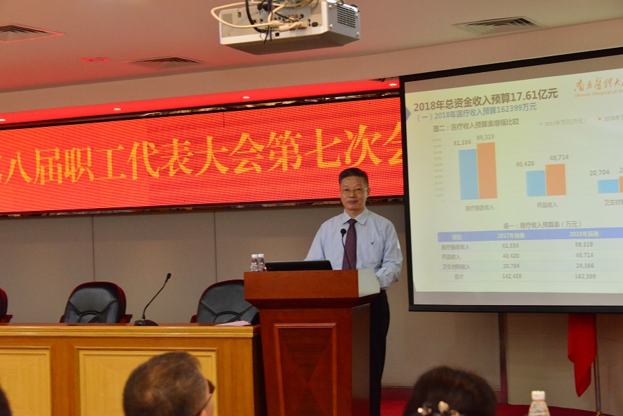 大會(huì)上,龍兆麟副院長作了《醫(yī)院文化理念》和《醫(yī)院院徽是否修改征求意見》報(bào)告,于新發(fā)副院長作了《2018年財(cái)務(wù)收支預(yù)算》和《醫(yī)院薪酬績效分配方案》報(bào)告。