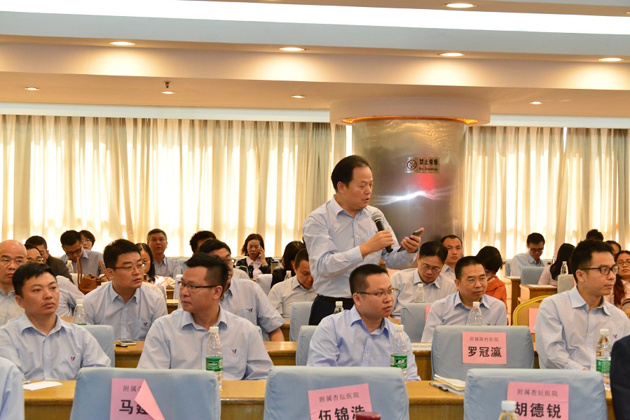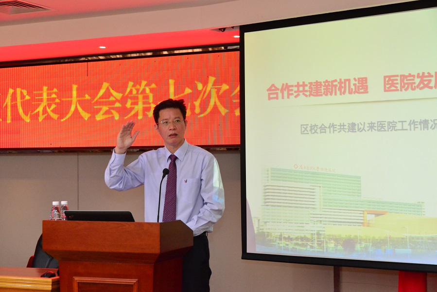 劉瑞林院長在會(huì)上作了題為《合作共建新機(jī)遇,醫(yī)院發(fā)展新啟航——區(qū)校合作共建以來醫(yī)院工作情況匯報(bào)》。