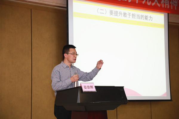 學(xué)校黨政辦姜崇輝副主任以《怎樣當(dāng)好基層黨支部書記》為題,對(duì)做一名合格基層黨支部書記的標(biāo)準(zhǔn)進(jìn)行了解析。