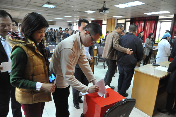 會(huì)議第二個(gè)議程是選舉新一屆黨委委員,會(huì)議嚴(yán)格按照上級黨委有關(guān)選舉工作的規(guī)程進(jìn)行。主持人宣讀了佛山市順德區(qū)衛(wèi)生和計(jì)劃生育局機(jī)關(guān)黨委有關(guān)選舉批復(fù)文件,大會(huì)審議通過了選舉工作辦法,以無記名投票、差額選舉方式進(jìn)行了黨委委員選舉。選舉產(chǎn)生了陳小伍、鐘劍萍、胡允兆、于新發(fā)、錢江、龍兆麟、朱達(dá)堅(jiān)、廖玉聯(lián)、伍錦浩、羅冠瀛、麥兆章等11位同志為醫(yī)院新一屆黨委委員。