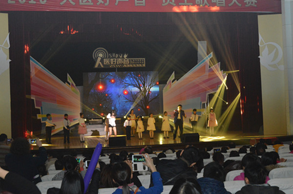 更讓人驚奇的是員工高漲的參與熱情,醫(yī)院工會號召力強(qiáng),全院上下積極響應(yīng),重在參與,主動請纓,上至院領(lǐng)導(dǎo),下到科室主任、護(hù)士長,更多的是常年奮戰(zhàn)在臨床一線的醫(yī)生、護(hù)士,短短數(shù)日即有200多人報名參賽,從預(yù)賽到?jīng)Q賽,一路走來,熱情迸發(fā)。經(jīng)過海選,20位頗具藝術(shù)風(fēng)范的科主任、資深護(hù)士長、功底扎實(shí)的普通員工進(jìn)入了決賽。為了集體、也為了榮譽(yù),他們個個做好準(zhǔn)備、鉚足功夫,盛裝登場,星范十足,用激情、用自信、用智慧演繹屬于自己的舞臺人生,用歌聲把自己最美的一面展現(xiàn)給大家。臺上演員動情表演,高潮迭起,激動人心,臺下各種“粉絲團(tuán)”“親友團(tuán)”“媽媽團(tuán)” 手持多彩的熒光棒和LED燈牌跟隨音樂搖擺,踏著音樂腳步歡快起舞,完全陶醉于選手們的歌聲中,偌大個禮堂仿佛就是音樂的海洋。