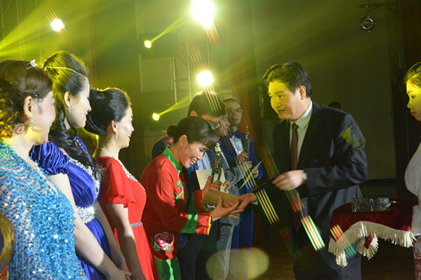 廖玉聯(lián)主席為伴舞團(tuán)金獎、銀獎選手代表頒獎。