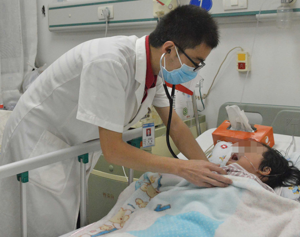 患兒在重癥醫(yī)學(xué)科接受救治。