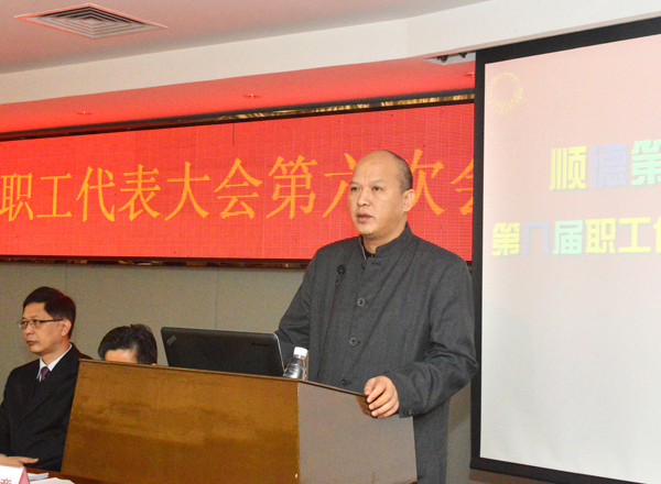 代表們認(rèn)真聽取職代會(huì)報(bào)告。