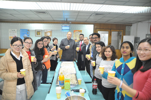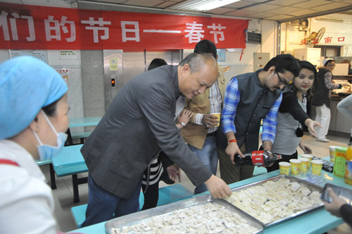下午四點(diǎn)左右,外地員工和留學(xué)生們聚集在飯?zhí)茫炔患按貒L試制作餃子、蛋散和油角。雖然很多人都是第一次嘗試,但在飯?zhí)脦煾档闹笇?dǎo)下,很快大家就掌握了要領(lǐng),紛紛動手制作。就這樣,大家在歡聲笑語當(dāng)中,共同慶祝新春的到來。