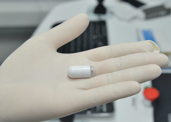 吞服一顆與普通膠囊大小相似的膠囊內(nèi)鏡,膠囊進(jìn)入胃內(nèi)即可進(jìn)行連續(xù)不間斷的拍攝,通過無線技術(shù)將拍攝到的圖像實(shí)時(shí)傳輸?shù)焦ぷ髡緝?nèi),同時(shí)醫(yī)生根據(jù)需要對(duì)膠囊進(jìn)行實(shí)時(shí)的遙控,從而實(shí)現(xiàn)消化道內(nèi)的檢查。