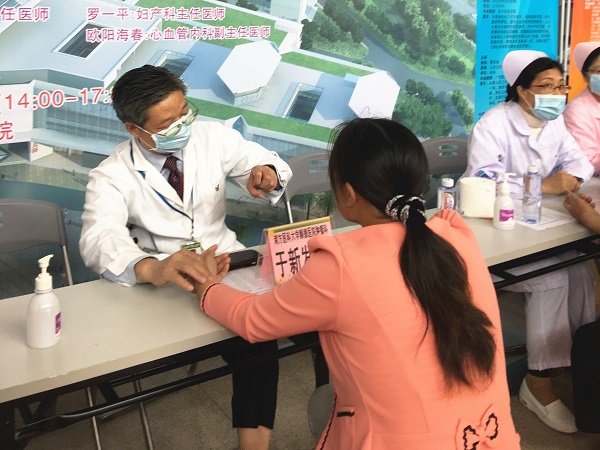 ??????? 兩場義診分別在新興人民醫(yī)院和新興文化廣場舉行。在我院中醫(yī)科攤位前,一位“粉絲”潘阿姨兩天都專門過來找中醫(yī)科張純主任,因為張醫(yī)生用一根小小的銀針,緩解了她多年的疼痛,潘阿姨連聲道謝。兒科蒙來成副主任也不停地“圈粉”,前來就診的小粉絲絡(luò)繹不絕,心血管內(nèi)科歐陽海春副主任醫(yī)師也熱情地接待了近100名患者。在為群眾提供疾病咨詢的同時,每一位醫(yī)務(wù)人員還根據(jù)群眾的需求和疾病種類,利用健康小冊子和案例,使用接地氣的話語對群眾進行精準化宣教,按照精準化扶貧要求,做好健康教育工作,讓每一個群眾都成為自己的健康管理第一責任人。