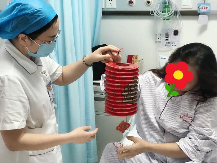 婦一科以“月滿中秋,禮贊國慶”為主題,在科室走廊舉行了系列游戲活動,有“投入懷抱”、愛心圈”等,吸引不少住院患者和家屬前來參加,大家臉上都洋溢著燦爛的笑容。活動結束后,婦一科梁燕秋護長攜區(qū)淑珍、鄭少玲等護士一起到病房把滿載著祝福的燈籠、禮品送到臥床不能參加活動的患者,為患者及家屬送去親切熱忱的問候。