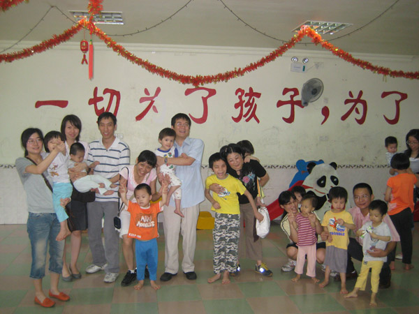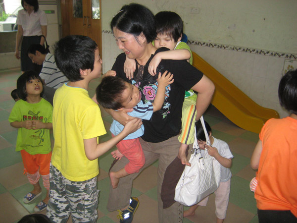 小朋友們遠(yuǎn)遠(yuǎn)的看見我們到了院門口,一個個高興地圍著欄桿向我們張望。剛進(jìn)去就被他們團(tuán)團(tuán)圍住了,看我們給他們帶了什么好吃的、好玩的,有的拿著玩具活蹦亂跳;有的帶我們到電視機(jī)前看電視;有的讓我們跟他們一起唱兒歌,但無論做什么得先滿足他們的一個小要求,就是抱著他們。瞧,一位面相慈祥的同事前面抱一個,后面背一個,手里牽一個,旁邊還跟著一個呢,不一會兒功夫她已是滿頭大汗,但臉上露出的卻是慈母的微笑。我深深的感覺到孩子們?nèi)鄙俚氖菗崦?、是呵護(hù)、是父母的愛!雖然社會上有很多人都在幫助他們,可是他們始終是被遺棄的孩子,與在父母呵護(hù)下的孩子相比,他們渴望更多的關(guān)愛。雖然他們身體有殘疾,卻都很聽話,很懂事!