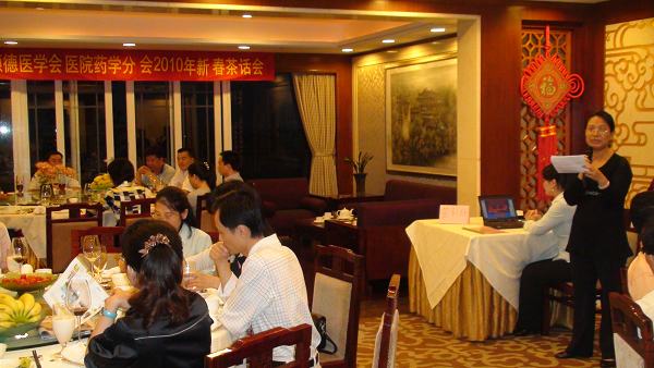 醫(yī)院藥學(xué)分會(huì)主任委員黃凱文發(fā)表了熱情洋溢的新春致辭,首先對(duì)上級(jí)部門各領(lǐng)導(dǎo)對(duì)醫(yī)院藥學(xué)分會(huì)工作的指導(dǎo)與支持表示感謝,并通過到場(chǎng)的各委員向所有辛勤工作在衛(wèi)生系統(tǒng)各崗位的藥學(xué)工作者轉(zhuǎn)達(dá)新年的祝福與問候。會(huì)上,黃凱文主任委員回顧了2009年醫(yī)院藥學(xué)分會(huì)的工作成果,并對(duì)2010年醫(yī)院藥學(xué)分會(huì)學(xué)術(shù)活動(dòng)的開展、加強(qiáng)藥學(xué)工作人員的業(yè)務(wù)知識(shí)水平等各方面作計(jì)劃和展望。黃主任最后還呼吁大家出謀獻(xiàn)策,為振興醫(yī)院藥學(xué)分會(huì)、推進(jìn)順德藥學(xué)事業(yè)發(fā)展多提寶貴意見和建議。