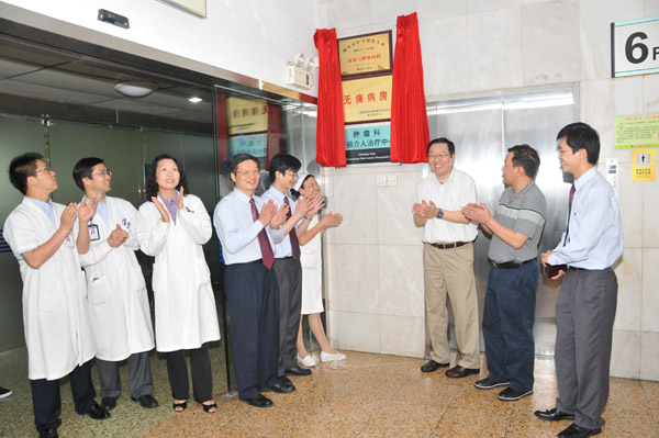 讓癌癥患者無(wú)痛,是我院腫瘤科追求的目標(biāo)。去年我們?cè)趶V東省癌癥康復(fù)與姑息治療委員會(huì)的指導(dǎo)下,采取了一系列措施,規(guī)范了癌癥疼痛的處理流程,達(dá)到了無(wú)痛病房創(chuàng)建要求。2011年1月25日,廣東省抗癌協(xié)會(huì)癌癥康復(fù)與姑息治療專(zhuān)業(yè)委員會(huì)召開(kāi)“廣東省無(wú)痛示范病房評(píng)審總結(jié)暨無(wú)痛病房啟動(dòng)”會(huì)議,全省首批啟動(dòng)了十二個(gè)無(wú)痛病房,我院腫瘤科名列其一。亦即充分肯定我院腫瘤科在腫瘤姑息治療、讓病人無(wú)痛方面的工作和成績(jī),對(duì)我科腫瘤康復(fù)以及姑息治療方面提出了新的要求,腫瘤科無(wú)痛病房于4月22日掛牌。