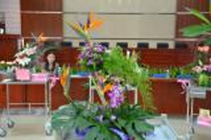 比賽現場人聲鼎沸、熱鬧非常,各參賽小組的啦啦隊都為自己的隊員助威吶喊,但絲毫沒有影響到參賽選手,他們專心致志地構思著參賽作品的制作。整個賽場,玫瑰、百合、非洲菊、馬蹄蓮、天堂鳥、蝴蝶蘭等各色鮮花匯聚一堂,五彩繽紛。這一刻,忘卻工作和生活煩惱的白衣天使們,在這座美的殿堂里,以不同的方式,表達著人生的壯志豪情,憧憬著科室集體乃至醫(yī)院的美好發(fā)展未來……她們始終沒有忘卻的是那一份救死扶傷、無私奉獻的天使情懷!