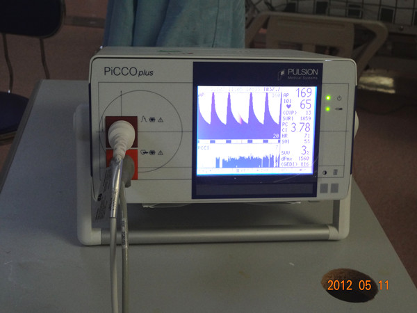盡管PiCCO取得巨大的成功,但在國(guó)內(nèi)應(yīng)用尚未普及,此前在順德地區(qū)的應(yīng)用更是一片空白?,F(xiàn)我院在院領(lǐng)導(dǎo)的大力支持下及左六二主任技術(shù)支持下,重癥醫(yī)學(xué)科成功裝備順德地區(qū)第一臺(tái)PiCCO監(jiān)測(cè)儀,并填補(bǔ)了這一空白。使我科在危重病人血流動(dòng)力學(xué)方面的監(jiān)測(cè)更全面,為臨床醫(yī)生提供有價(jià)值的信息,從而做出及時(shí)、準(zhǔn)確的治療決策,使危重患者獲得更多的益處。
