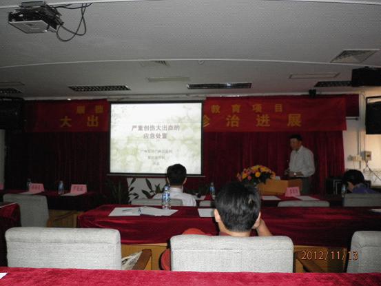 2012年11月,在我院重癥醫(yī)學科承辦了順德醫(yī)學會重癥醫(yī)學分會的《大出血臨床診治》會議。本次會議邀請了廣州軍區(qū)總醫(yī)院ICU主任蘇磊教授及中山大學第一附屬醫(yī)院SICU主任蔡常潔教授參加。