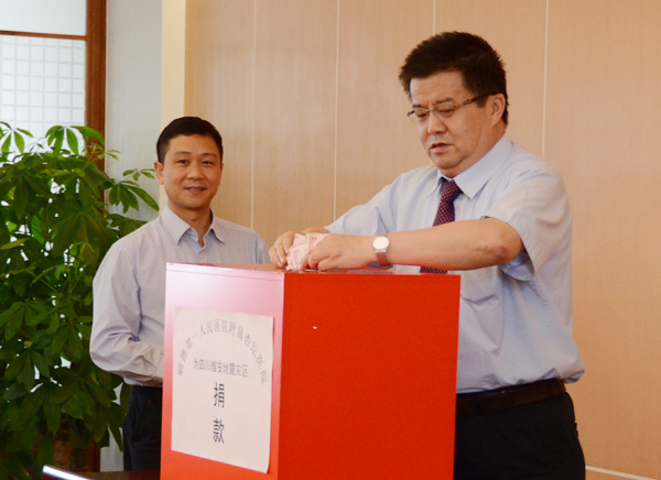 4月23日,我院附屬杏壇醫(yī)院迅速行動,發(fā)出倡議,號召全體職工發(fā)揚中華民族“一方有難,八方支援”的傳統(tǒng)美德,積極捐款,為災(zāi)區(qū)人民奉獻愛心。當天下午在五樓學術(shù)廳捐款活動現(xiàn)場,在錢江院長帶領(lǐng)下,全體院領(lǐng)導(dǎo)與中層以上干部踴躍捐款,紛紛慷慨解囊。