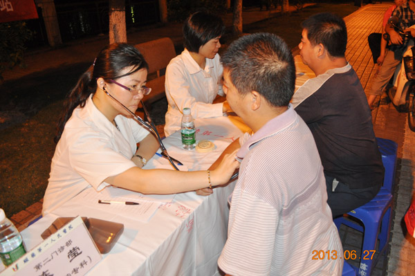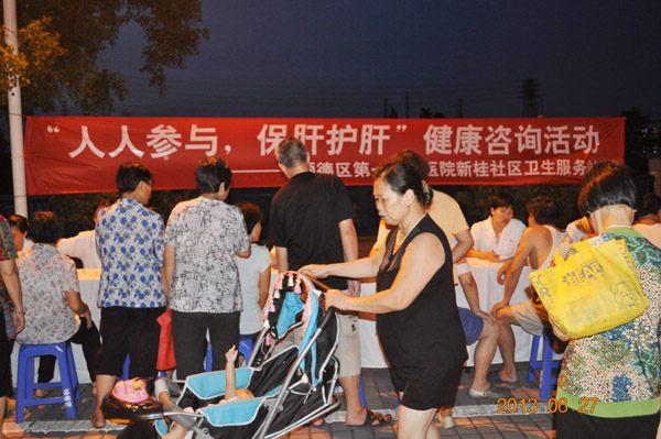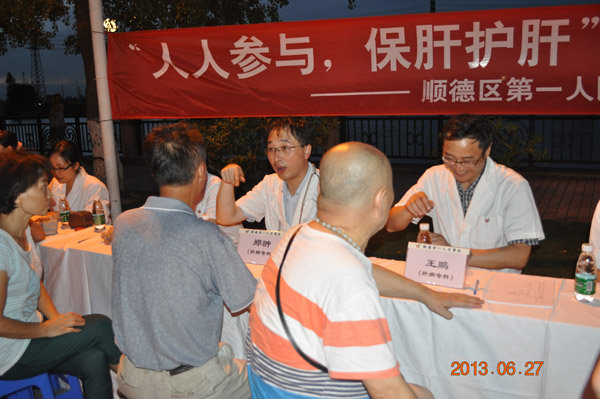 2013年6月27日,我院中醫(yī)老年病科、感染性疾病科聯(lián)合新桂社區(qū)衛(wèi)生服務(wù)站舉辦以“人人參與,保肝護(hù)肝”為主題的健康咨詢活動(dòng)。旨在提高人們對(duì)病毒性肝炎及其相關(guān)疾病的認(rèn)識(shí)和了解,并加強(qiáng)預(yù)防及控制肝病的發(fā)生。據(jù)相關(guān)統(tǒng)計(jì),在全球,每12個(gè)人中就有1位肝炎病毒感染者,每年有100多萬(wàn)人死于此病。目前,我國(guó)仍有上億乙肝病毒攜帶者,乙肝患者人數(shù)也超過(guò)兩千萬(wàn)。專家表示,遠(yuǎn)離肝炎,防重于治,保持心情舒暢,不酗酒,不熬夜,不過(guò)勞,愛(ài)護(hù)好自己的肝臟,人人“小心肝”。當(dāng)晚提供了免費(fèi)健康咨詢、測(cè)血壓及個(gè)人體格檢查,并為轄區(qū)內(nèi)的居民建立檔案,派送小冊(cè)子、小禮物。為居民測(cè)量血壓168多人次,健康咨詢達(dá)148人次,受到了居民們一致好評(píng),起到很好的宣傳效果。
