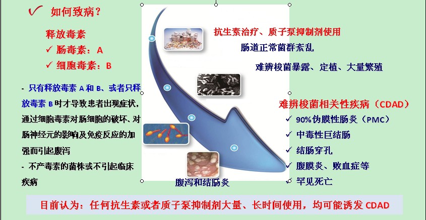 難辨梭菌相關(guān)性疾?。–DAD)目前被定義為抗生素治療誘導(dǎo)的院內(nèi)感染,為導(dǎo)致腹瀉和結(jié)腸炎的重要原因之一,臨床約20%抗生素相關(guān)性腹瀉由難辨梭菌產(chǎn)毒素引起。由于產(chǎn)生的孢子使細(xì)菌具有耐熱、耐干燥、以及多種化學(xué)物質(zhì)(包括消毒劑)等特性,因此極易造成院內(nèi)爆發(fā)感染流行。