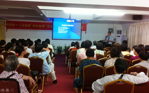 在第二十一個“粉紅絲帶日”來臨之際,于7月20日下午我院心胸乳腺外科在曾智豪主任的帶領下,拉開了“情系粉紅絲帶,讓女人更加精彩”等系列活動。以“粉紅絲帶,傳遞真愛”為宗旨,首先曾主任通過生動的專題講座闡述了乳腺癌的發(fā)病原因、如何防治等,緊接著何慧君醫(yī)生現(xiàn)場手把手地教會乳房的自我檢查、觀看視頻、現(xiàn)場答疑等,讓大家相聚一起,共同學習了乳腺疾病的相關預防保健措施等知識?;顒蝇F(xiàn)場氣氛活躍,大家都向乳腺專家提出了日常生活中的疑惑,包括飲食方面的禁忌,生活習慣以及性格對乳腺疾病的影響等,活動后患者們反響熱烈,希望以后多舉辦相關的活動。
