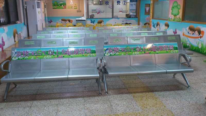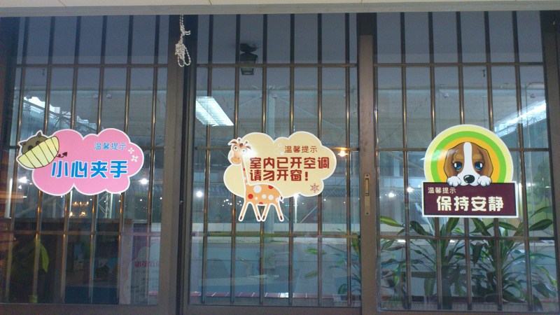 考慮到大部分半大不小的患兒都是活潑好動(dòng)的個(gè)性,為避免他們受傷,一門診兒科的護(hù)理人員盡全力的為他們提供一個(gè)溫馨安全健康的候診環(huán)境。比如在玻璃窗上長期貼上各種可愛動(dòng)物圖像的溫馨提示語:保持安靜!小心夾手!室內(nèi)已開空調(diào)請(qǐng)勿開窗等等。以此提醒家長們帶好自己的小孩,不要讓他們開關(guān)窗戶以免受傷。在分診臺(tái)前一排凳子上的顯眼位置貼上清新的提示語:發(fā)燒38.5攝氏度以上專用觀察凳。提醒家長們發(fā)燒38.5攝氏度以上要坐在分診臺(tái)的第一排,以方便護(hù)理人員觀察患兒的病情變化,杜絕安全隱患。