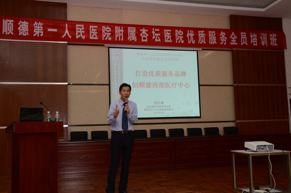 為提升全員優(yōu)質服務意識,推動“三好一滿意”活動縱深發(fā)展,全面導入優(yōu)質服務理念,重新塑造醫(yī)院服務體系及理順服務流程。附屬杏壇醫(yī)院于9月12、13日兩個下午,分兩批組織全體員工在門診四樓大會堂舉辦“優(yōu)質服務全員培訓班”,邀請了醫(yī)院服務培訓咨詢專家、澳洲國立大學國際管理碩士翟勝飚老師擔任主講導師,培訓班分別由葉德夫常務副院長及梁善堂副書記主持。