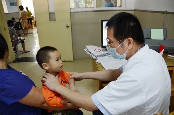 兒科醫(yī)師在為小患者細(xì)心診斷。 |
