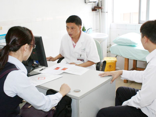 醫(yī)師在為群眾細(xì)心診斷。