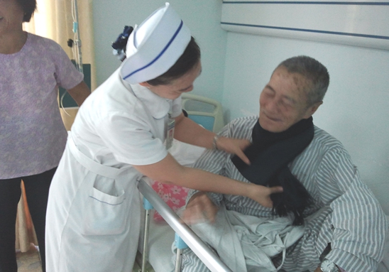 重陽(yáng)節(jié)的早晨,交完班,主任和護(hù)長(zhǎng)帶著我們一起去查房,給公公婆婆送上我們準(zhǔn)備好的禮物。禮輕情意重,一條小小的圍巾,卻代表著我們整個(gè)腎內(nèi)科醫(yī)務(wù)人員的心意和最真誠(chéng)的祝福。當(dāng)主任握著五床旺婆婆的手,一句輕輕的問(wèn)候,護(hù)長(zhǎng)為她戴上我們送的圍巾時(shí),93歲患有老年癡呆癥的旺婆婆居然說(shuō)出一句“謝謝,盛惠了”。一句簡(jiǎn)單的“謝謝”對(duì)我們來(lái)說(shuō)是多么的有意義,大家都高興地笑了。接著,我們繼續(xù)把圍巾送到每一位公公婆婆的手里,每一次的送禮都換來(lái)老人的感謝,還有他們最可愛(ài)的笑容。整個(gè)病房里都充滿著節(jié)日的喜悅氣氛。