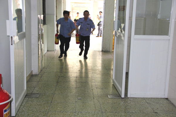 當(dāng)日上午11時,模擬演練正式開始。氧艙工作人員發(fā)現(xiàn)艙外“火情”,馬上發(fā)出警報,緊急關(guān)閉氧氣閥、總電源,并對艙內(nèi)人員進(jìn)行安撫,科主任接到報警后,立即啟動科室應(yīng)急救援預(yù)案,進(jìn)行緊急泄壓開艙,撤離艙內(nèi)患者,展開轉(zhuǎn)移患者的救援工作。在同一時間內(nèi),由保安組成的滅火組,迅速利用現(xiàn)場的滅火器材,趕到高壓氧艙與醫(yī)護(hù)人員一同進(jìn)行滅火,直至將火勢撲滅。到此緊張而有序的高壓氧艙消防演練結(jié)束并獲得圓滿成功。