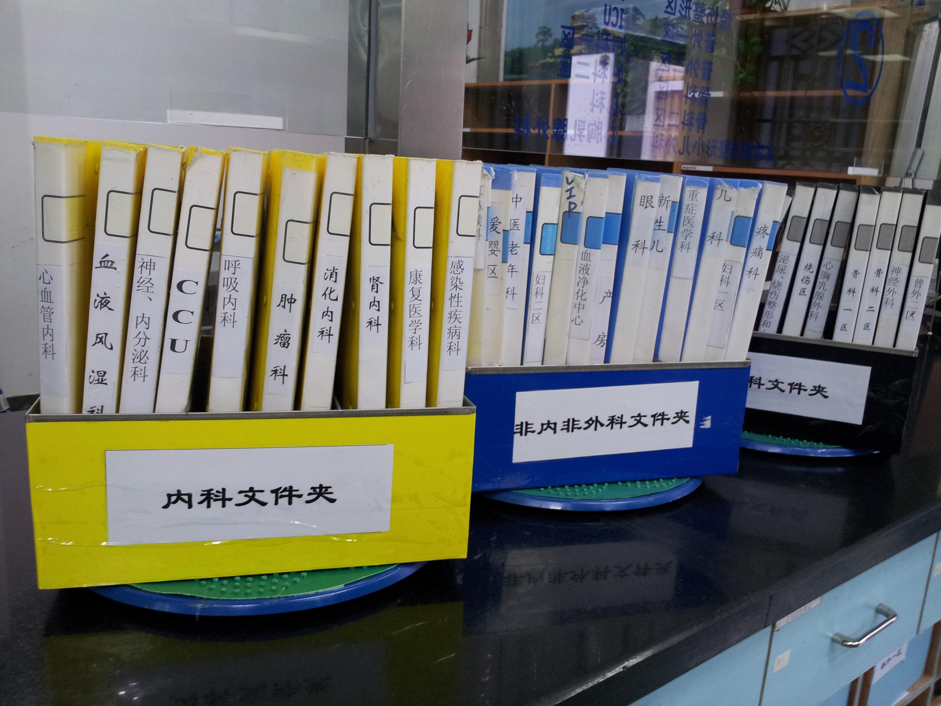 當(dāng)文件夾小轉(zhuǎn)盤呈現(xiàn)在我們眼前時,我們興奮、激動的心情無法形容:小轉(zhuǎn)盤把五個文件架壓縮成三個,縮小了占用空間,三種顏色分別代表外科、內(nèi)科、非內(nèi)非外科,取放直觀,用手輕輕一轉(zhuǎn),兩邊都容易取放,又不受玻璃窗阻礙,既方便護(hù)士又方便自己!