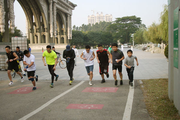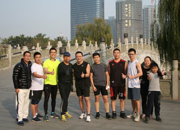 早上九點(diǎn),運(yùn)動(dòng)健兒們整裝待發(fā),既有朝氣蓬勃、躍躍欲試的80后小伙,也有寶刀未老的50后馬拉松健將。王衛(wèi)東主任與大家一起,從牌坊出發(fā),環(huán)繞青云湖和桂畔湖進(jìn)行了一次別開(kāi)生面的環(huán)湖長(zhǎng)跑比賽。外院?jiǎn)挝坏膮①愡x手都是長(zhǎng)期堅(jiān)持馬拉松長(zhǎng)跑的健將,在激烈的角逐下,普外二區(qū)選手以35分9秒的優(yōu)異成績(jī)跑完了近