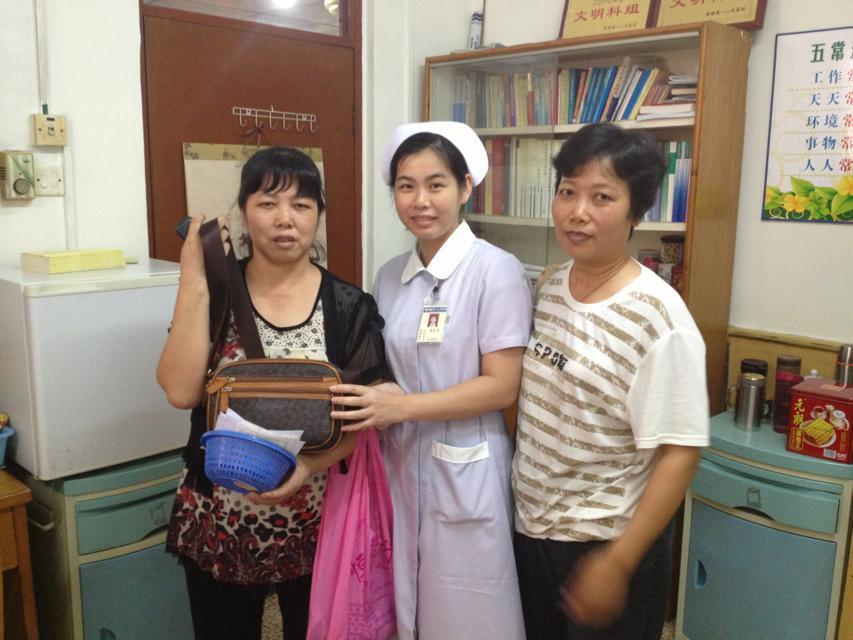 周三的門診,一如既往的忙碌。內(nèi)科分診前臺(tái)的袁導(dǎo)診正在給老人家測(cè)量血壓,一位阿姨突然把手上的皮包塞到袁導(dǎo)診的手中。原來這位譚阿姨在洗手間內(nèi)拾到這個(gè)皮包,為了將皮包交還給失主,譚姨在洗手間內(nèi)等了將近10分鐘,還是沒有見失主回來認(rèn)領(lǐng),最后只能求助我們的導(dǎo)診人員。譚姨說:“失主一定很著急,請(qǐng)你們一定要將它交還給失主。來醫(yī)院的都是看病,如果再丟失了錢財(cái),那就太可憐了?!?br/> 袁導(dǎo)診立即將譚姨帶到內(nèi)科辦公室內(nèi),與陳詠青組長(zhǎng)一起將包內(nèi)的物品打開清點(diǎn),試圖找出失主的個(gè)人信息盡快聯(lián)系失主。清點(diǎn)后發(fā)現(xiàn)包內(nèi)物品有大量現(xiàn)金、手機(jī)一臺(tái)、身份證件等。就在陳詠青組長(zhǎng)通過手機(jī)通訊綠查找失主的聯(lián)系方式時(shí),一陣急促的敲門聲響起,原來失主黃姨已經(jīng)發(fā)現(xiàn)自己的皮包不見,正在焦急的尋找中,好心的群眾指引黃姨前來求助。在核對(duì)黃姨就是皮包的主人后,譚姨面上有了舒心的笑容。黃姨更是一手拉著袁導(dǎo)診,一手拉著譚姨,感謝的話語不斷。黃姨說:“我發(fā)現(xiàn)皮包不見后,找了很多地方都沒找到,我都覺得沒有希望了。原來順德好人還是很多的,感謝你們護(hù)士,感謝這位阿姨?!?br/> 拾金不昧是我國傳統(tǒng)美德,像類似的事情,門診部每個(gè)禮拜都會(huì)出現(xiàn)幾次,秉承著科室“用心服務(wù)”的宗旨,同事們急他人之所急,不論是身份證件,錢包,手機(jī)、現(xiàn)金等,同事都想盡辦法將其交還給失主,獲得來院群眾的一致好評(píng)和失主們滿滿的感謝。遇到實(shí)在聯(lián)系不上的失主,第一時(shí)間通知醫(yī)院保衛(wèi)科下一步處理。我們相信傳統(tǒng)的美德也將會(huì)在我們?nèi)粘P袨橹胁粩嗟母腥?、傳遞給身邊的每一個(gè)人。