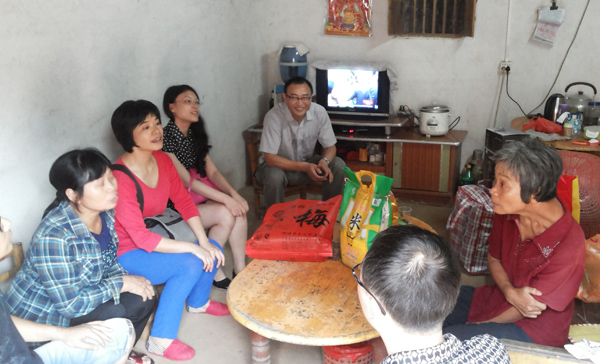 何姨是一位腦癱患者,語(yǔ)言和行動(dòng)能力受限,平時(shí)和她唯一的女兒住在兩間矮小陰暗悶熱的小平房里,家里年收入不足3000元,房間里可謂四壁如洗、家無(wú)余財(cái)。聽(tīng)著黃田村譚書(shū)記的介紹,我們都覺(jué)得心情很沉重。在譚書(shū)記的帶領(lǐng)下,我們好不容易找到了何姨家簡(jiǎn)陋的小平房。當(dāng)譚書(shū)記向何姨介紹今天順德第一人民醫(yī)院感染性疾病科的愛(ài)心人士今天專門過(guò)來(lái)關(guān)心慰問(wèn)何姨時(shí),何姨露出了樸實(shí)而靦椣的笑容。當(dāng)坐在何姨家的小平房里時(shí),我們對(duì)何姨家的境況有了更深刻的感受——房間不足10平方米,僅有一個(gè)小小的窗戶,光線陰暗,房間悶熱,房間里凌亂的擺放著一些日常生活用品。在房間里坐了一會(huì)兒,衣服就濕透了。