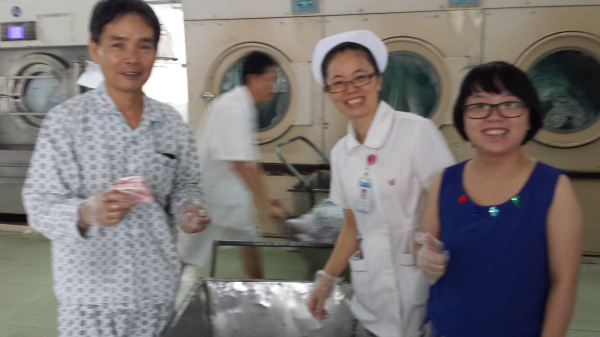 電腦班護(hù)士馬上與總務(wù)護(hù)士聯(lián)系,總務(wù)護(hù)士了解事情來龍去脈后,馬上帶領(lǐng)著這位患者去找換下來的病人服,但是衣服已經(jīng)被洗衣房的工作人員收走了??倓?wù)護(hù)士馬上帶著患者來到洗衣房。由于洗衣機(jī)內(nèi)一同清洗的衣服比較多,護(hù)士與工作人員一件一件仔細(xì)的地查找,找完一臺洗衣機(jī)內(nèi)的衣服,什么都沒有,再接著找,終于在一個洗衣機(jī)內(nèi)找到了證件夾,里面的證件都在,可是沒有看到任何現(xiàn)金的蹤影,找完另一臺洗衣機(jī),還是沒有。這時患者家屬開始心存疑惑,為什么證件在而現(xiàn)金不在呢?是不是有人已經(jīng)把現(xiàn)金拿走了呀?還要不要繼續(xù)找下去呢?護(hù)士和洗衣房的工作人員都建議繼續(xù)耐心的往下找,終于,在另一臺洗衣機(jī)內(nèi),找到了一些5元、10元的零錢,隨后,一疊百元的鈔票出現(xiàn)在了我們的視線中,經(jīng)過清點,共為1000無,與患者遺忘在病人服中的數(shù)相吻。
