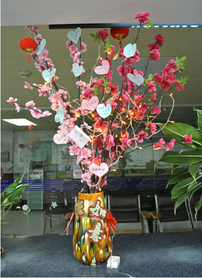 五彩繽紛的彩帶,擺年桔 充滿喜慶的福字剪紙 看到這些裝扮,有沒(méi)有頓時(shí)覺(jué)得年味十足呢? 特別要說(shuō)明的是護(hù)士站的“迎春桃花許愿樹(shù)”別出心裁。一朵朵桃花樹(shù)上墜滿五顏六色的心愿簽,心愿簽上有著各式各樣的美好祝愿。因此也獲得不少患者的青睞,都紛紛和許愿樹(shù)合影留念。 一位家在外地的住院患者王大媽因?yàn)椴∏樵驘o(wú)法回鄉(xiāng),此刻正在護(hù)士站深深感受著新年的氣息。王大媽不忍贊嘆說(shuō):“雖然我不能回家,但醫(yī)院特地為我們進(jìn)行新春裝扮,頓時(shí)讓我有著回家般的溫暖、喜慶的感覺(jué)。” 科室的新春裝扮不斷得到患者朋友的好評(píng),讓他們有溫馨的感受,暫時(shí)忘記疼痛,擁有一份祥和、歡樂(lè)的好心情。這也是我們裝扮科室的美好初衷。