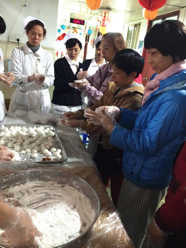 醫(yī)護人員與患者齊齊動手搓湯圓