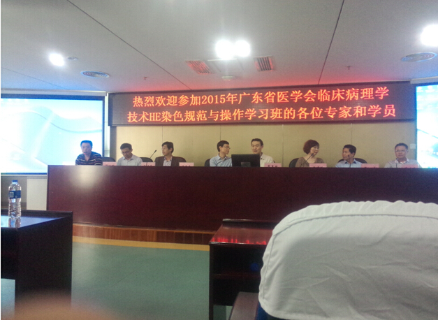 學習班中,專家為我們介紹了HE染色的基本理論知識與規(guī)范。其中說到組織制片過程中的每一個環(huán)節(jié)都會影響制片的質量。從組織離體開始,固定的時間、固定液的濃度、取材的質量、脫水的程度、透明的質量以及浸蠟是否充分等都會對制片質量產生直接的影響。另外更是為我們鞏固了HE染色的基本原理,分析影響HE染色的各種因素,指導我們如何避免不良因素,以及當不良因素出現(xiàn)時如何應對及補救。